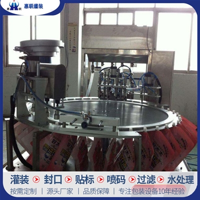 青州市惠聯灌裝機械有限公司是一家集生產研發、銷售、服務于一體的液體灌裝成套設備生產企業,可根據廠家要求設計合理液體灌裝生產線,為用戶提供技術咨詢、設計工藝、場區平面布置、工藝改造、設備安裝調試等完善服務。 公司生產制造各種類型液體灌裝機、過濾機,水處理設備及液體灌裝成套設備。主要產品有:白酒、葡萄酒、黃酒等酒水灌裝機、食用油、機油、潤滑油等油類灌裝機、醬油醋、老抽、生抽等調味品灌裝機、防凍液、玻璃水灌裝機、酒精、84消毒液灌裝機、車用尿素灌裝機、口服液灌裝機、洗滌劑灌裝機等多種液體、膏體灌裝設備,全自動/半自動灌裝機型號多,規格全,洗瓶機、瓶子封口機、打塞機、熱縮機、瓶子烘干機、貼標機、噴碼機、輸送線、裝箱機、水處理設備等全套生產線相關配套設備齊全,自產自銷,一站式購齊,售后無憂。